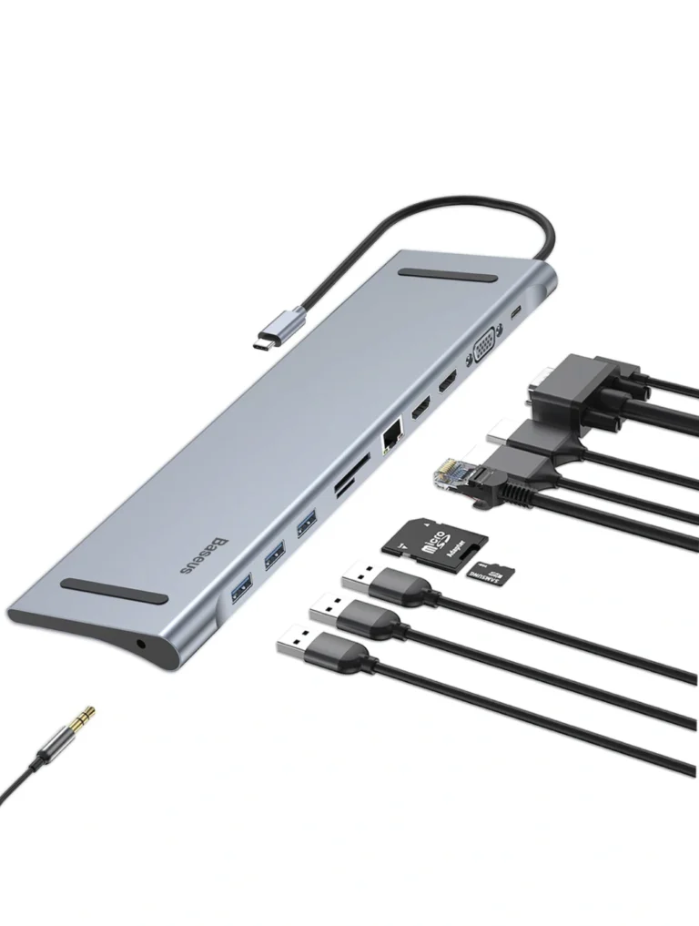 USB C Laptop Docking Station, Baseus Triple Display Type C Dock Station Adapter with 2 HDMI,VGA,PD 3.0 Type C Port,SD TF Card Reader,4 USB Ports Compatible for MacBook,Other USB C Laptop
