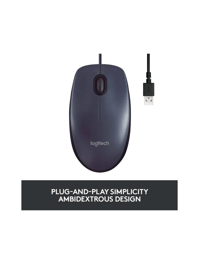 Logitech B100 Corded Mouse, Wired USB Mouse for Computers and Laptops, Right or Left Hand Use – Black