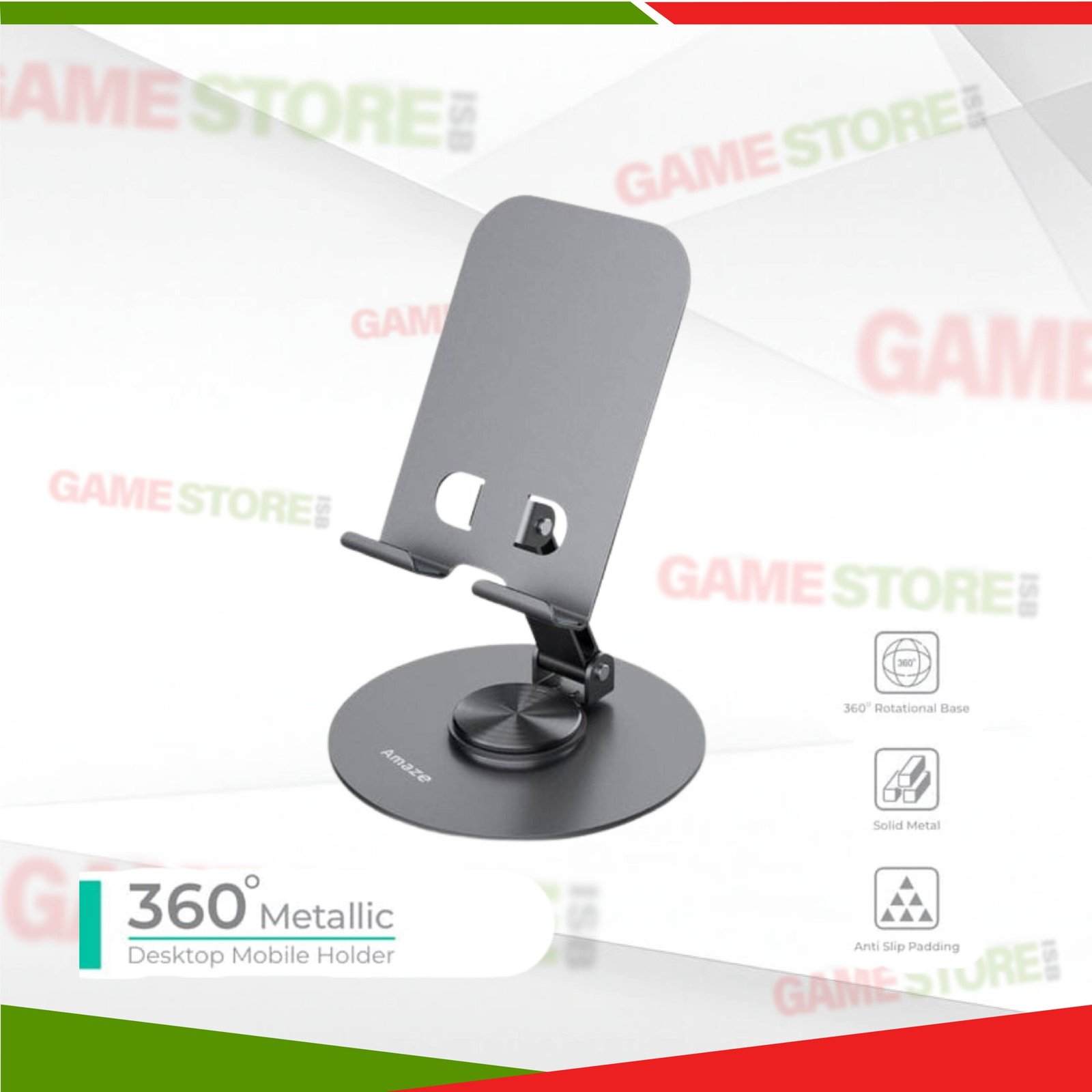 Before we Improve your desk with the 360° Metallic Mobile Holder | Desktop Mobile Stand A560. It is an all-rounder mobile stand with 360° rotation. The product will provide you with hands-free functionality and optimal ergonomics. You should upgrade your desk with the 360° Metallic Mobile Holder | Desktop Mobile Stand A560. It would be a perfect addition to your workplace as it is a product offered by Game Store Islamabad.
