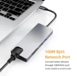 • Supports up to 100W power delivery to charge your laptop while using the hub, ensuring your device stays powered during extensive use.