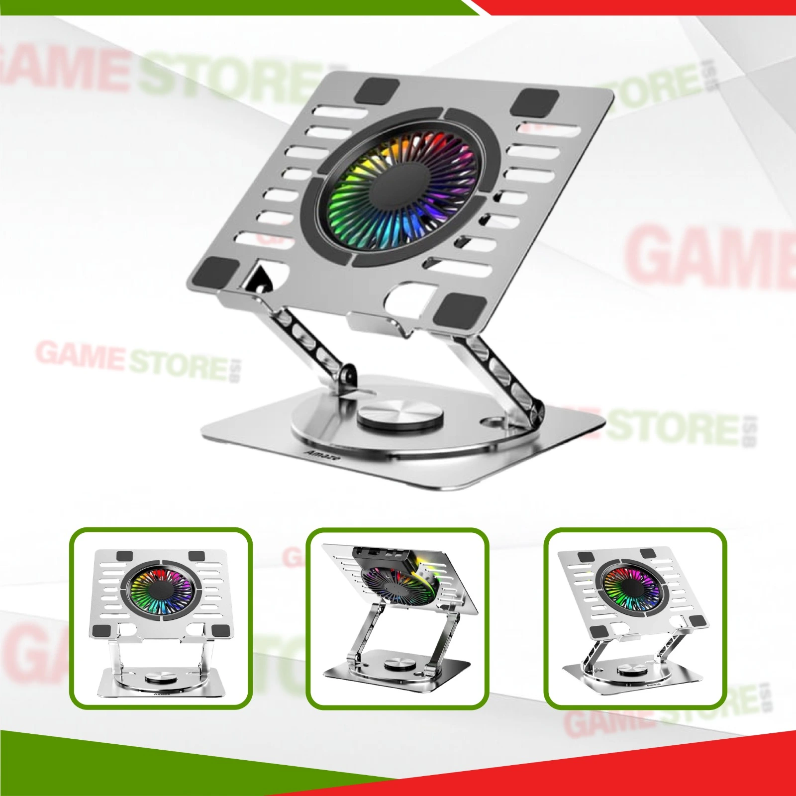 The A525 Aluminum RGB Laptop Cooling Stand is a premium solution designed for efficient laptop cooling, adjustable viewing comfort, and stylish RGB lighting. The A525 Aluminum RGB Laptop Cooling Stand features a durable aluminum body, rotatable structure, and powerful airflow that helps reduce laptop overheating during gaming, work, and long usage sessions.