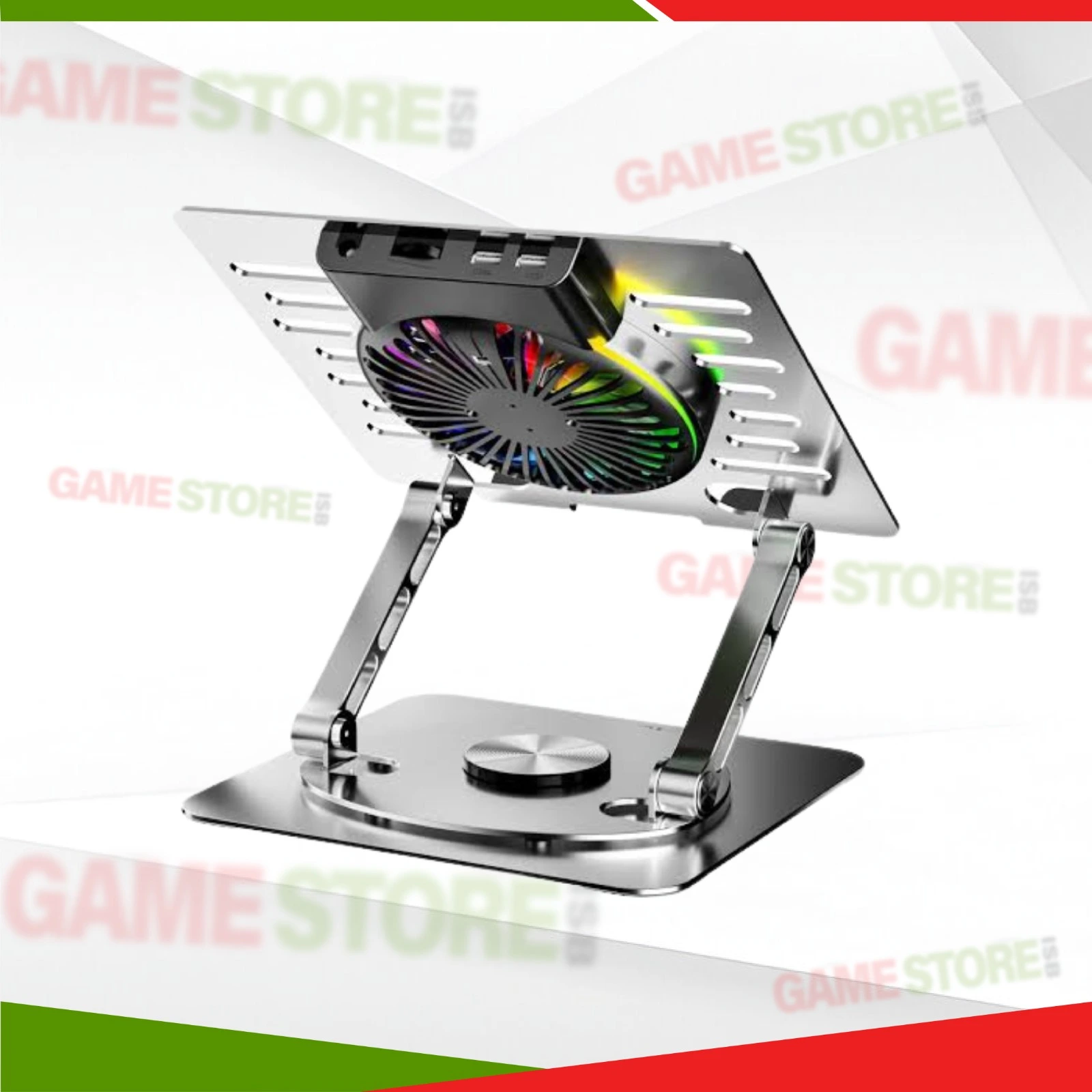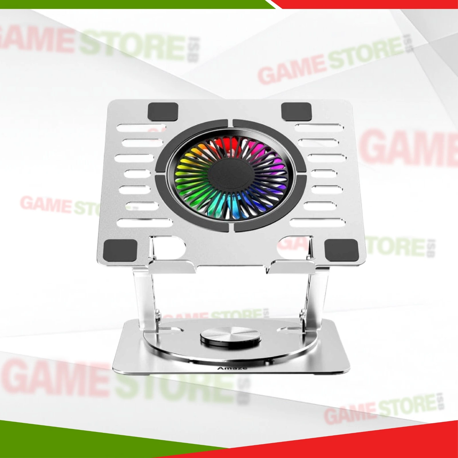The aluminum construction ensures long-lasting durability while efficiently dissipating heat. RGB lighting adds a modern gaming aesthetic, making the stand suitable for gaming setups, home offices, and professional workspaces. The cooling stand supports a wide range of laptop sizes and provides enhanced airflow to maintain optimal device temperature.