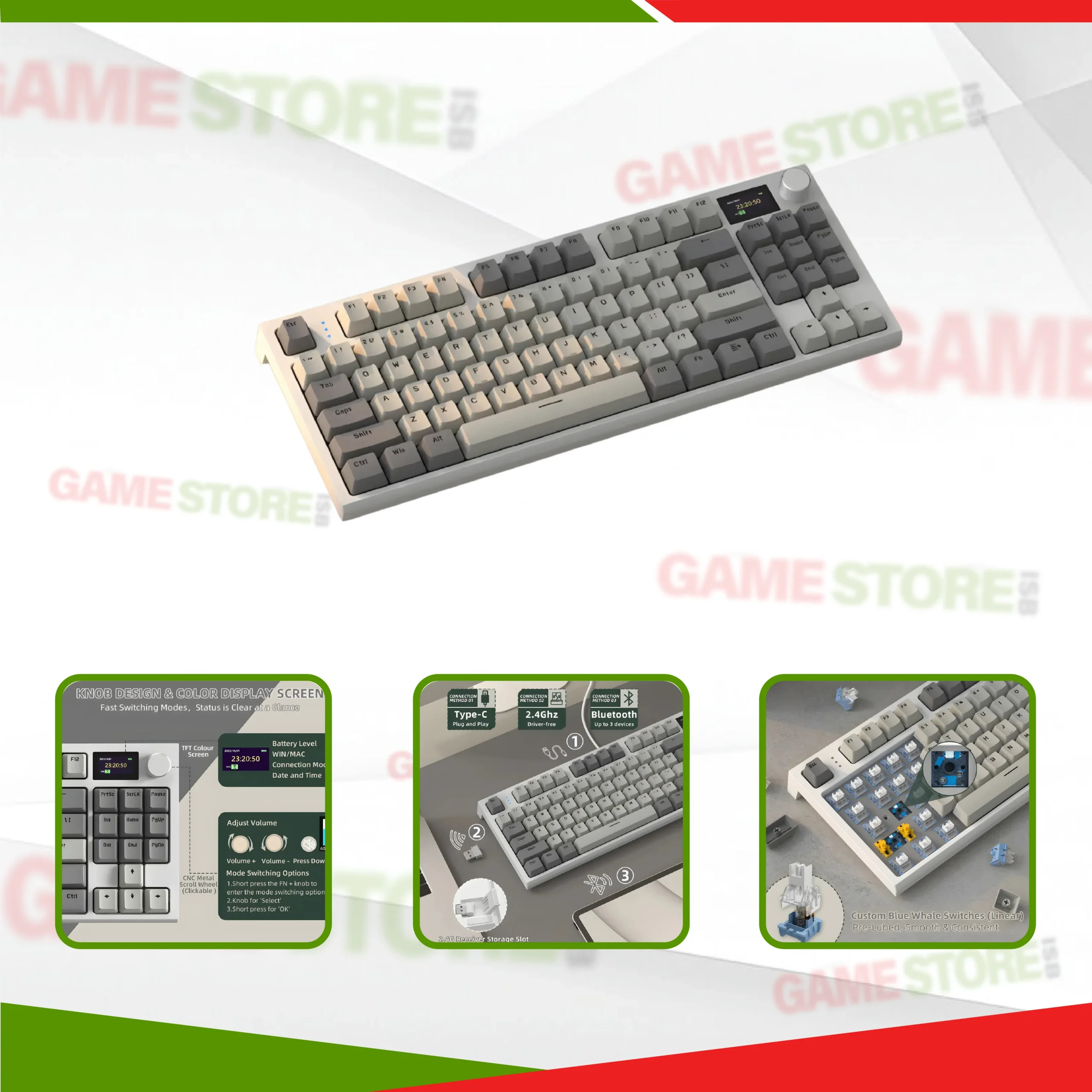 Equipped with 13 brightly colored CBT Krabikar keys, it offers both long durability and elegant talent. Thanks to its innovative TFT display, ergonomic cap with CNC, hot switch and connections to three people, the Shark Attack K86 replicates what a mechanical keyboard can do. Whether you play competitive, encoding, or creating, this keyboard adapts to your needs with unparalleled flexibility.
