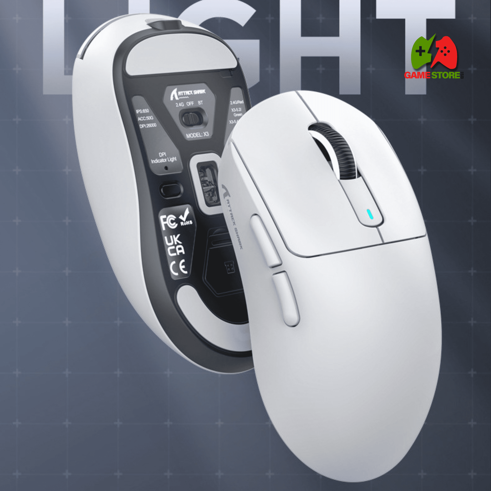 Experience ultralight precision gaming with the ATTACK SHARK X3 Wireless Gaming Mouse. Featuring the Pixart PAW3395 sensor with 26,000 DPI, Kailh GM8.0 switches, and Tri-Mode connectivity (2.4G, Bluetooth, USB-C wired), this 49g ergonomic mouse is built for speed, accuracy, and comfort.