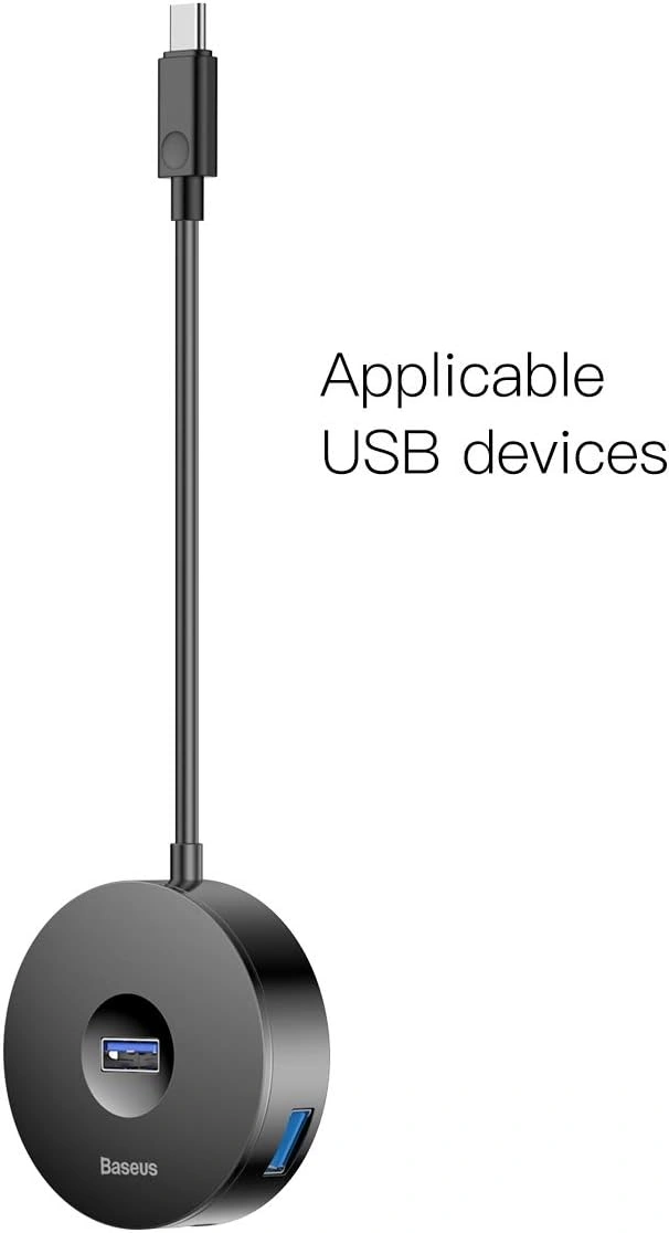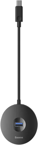 At its core, the Baseus Round Box Hub Adapter features a USB Type-C connector on one end and multiple USB ports on the other. It includes one USB 3.0 port and three USB 2.0 ports, providing a range of options for connecting external storage devices, keyboards, mice, printers, and other USB accessories.