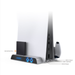 The Dobe Multifunctional Cooling Stand for PS5 is an accessory designed to enhance the gaming experience and provide additional functionality for the PlayStation 5 (PS5) console. Here’s what you can typically expect from this cooling stand: