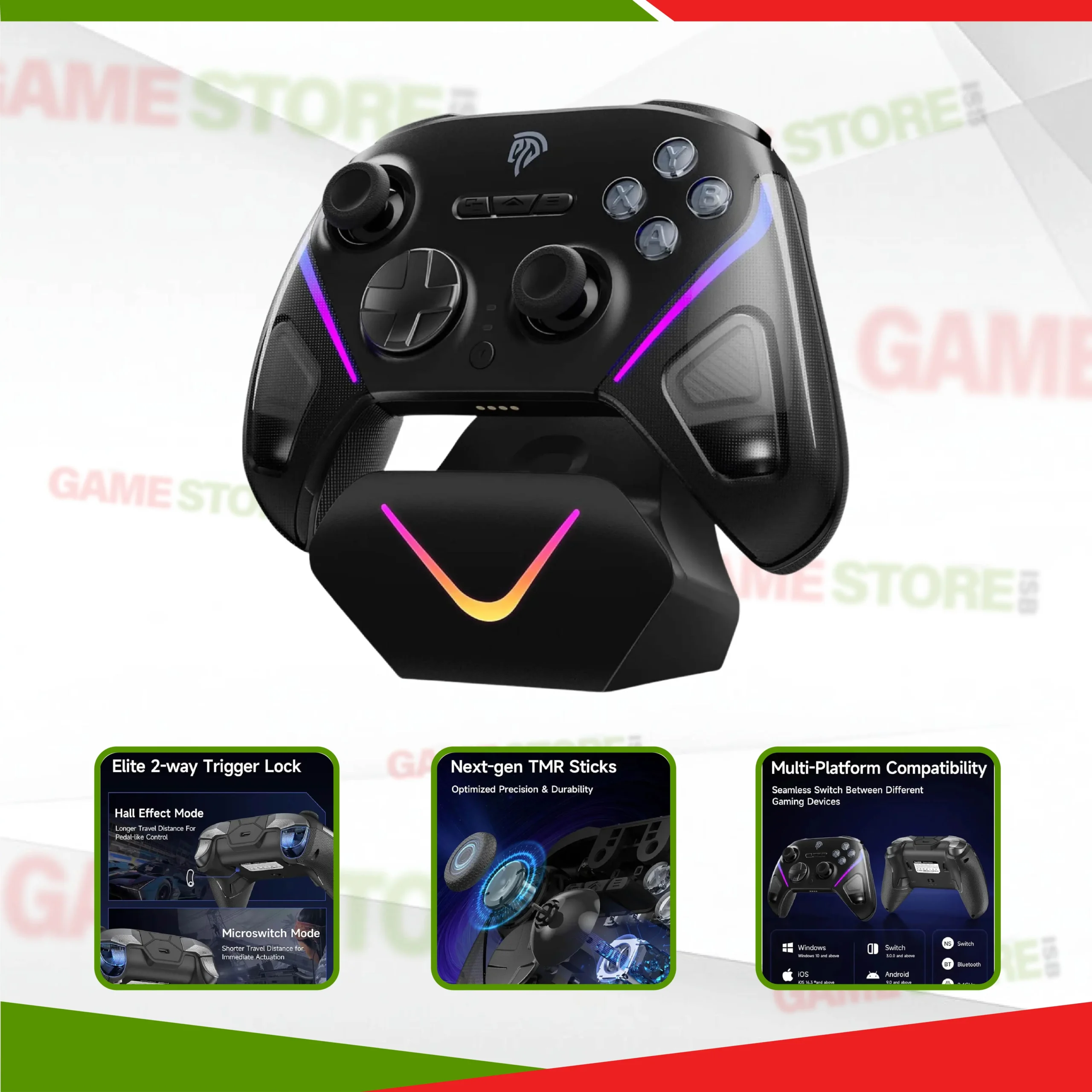 The EasySMX D10 Wireless Game Controller features elite gaming performance with TMR anti-drift joysticks, dual-mode adaptive triggers, and a 1000Hz ultra-fast polling rate. For competitive gamers, the design includes mechanical tactile buttons, vibrant RGB lighting, and smooth Bluetooth + 2.4G dual connectivity for consoles, PC, and mobile devices. With zero-lag response, long battery life, and premium ergonomic comfort, this Bluetooth gamepad ensures unbeatable control over FPS, racing, action, and eSports titles.