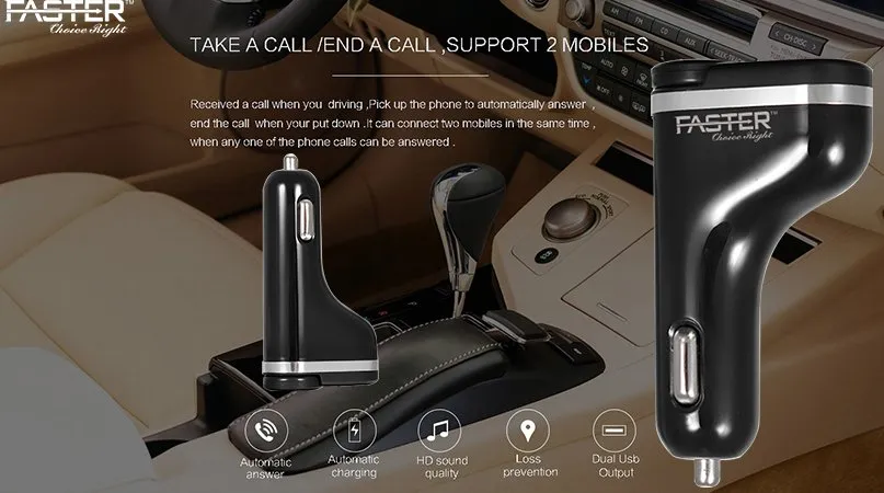 FASTER F178 Wireless Headset with Smart Car Charger : With A New Design And Highly FASTER F178 Wireless Headset with Smart Car Charger , New Design Branded Is A Perfect Car Charger  For Any Mobile.