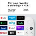 Google Chromecast with Google TV (4K)- Streaming Stick Entertainment with Voice Search – Watch Movies, Shows, and Live TV in 4K HDR – Snow