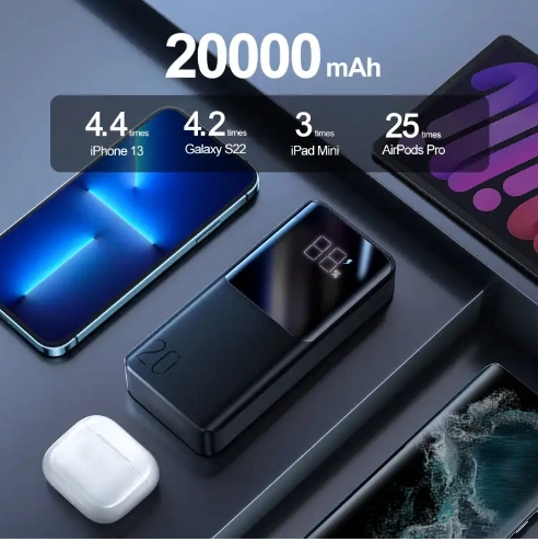 • The Joyroom JR-QP192 is a high-powered, ultra-fast charging power bank that can charge your devices at up to 22.5W. It has a massive 20000mAh capacity, meaning it can charge most phones and tablets multiple times over. It also features an LED power indicator so you can always see how much power is remaining.