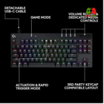Experience pro-level gaming with the Logitech G PRO X TKL RAPID Keyboard, featuring magnetic analog switches, rapid trigger functionality, adjustable actuation, and customizable RGB lighting in a compact tenkeyless design.