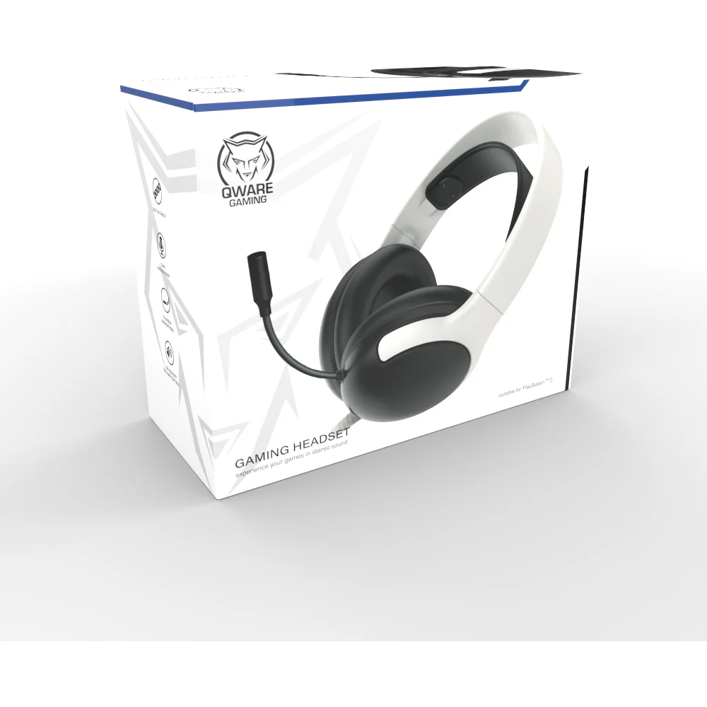 This Qware Gaming stereo over-ear headset suitable for the PS5 features a flexible microphone and adjustable headband. Experience the ultimate gaming sensation in high quality. This headset is equipped with a 2.2 metre cable with 3.5 mm jack. The headset is made for PlayStation 5, but also suitable for PlayStation 4 pro, Xbox One and Xbox Series X/S with 3.5 mm jack and phone/tablet/PC with a 3.5 mm jack.