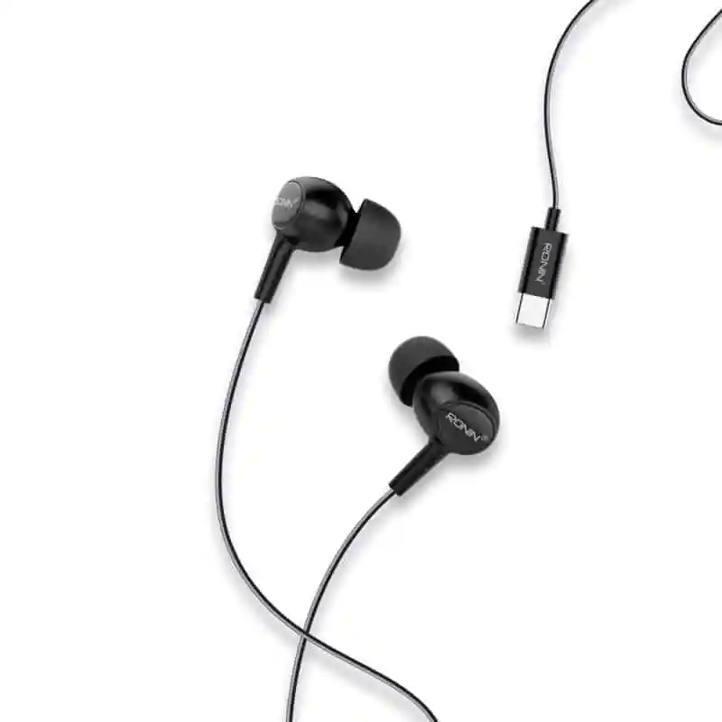 1. USB Type-C Connector: The earphones feature a USB Type-C connector instead of the traditional 3.5mm audio jack. This connector plugs directly into devices that have a USB Type-C port, such as many modern smartphones, tablets, and laptops.