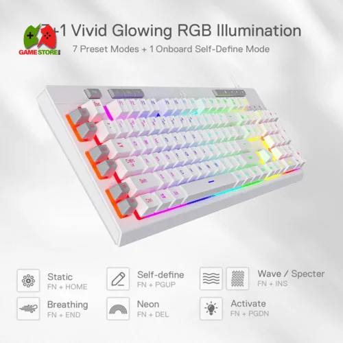 The Redragon K512W SHIVA RGB Backlit Membrane Gaming Keyboard (White) is designed for gamers and professionals who want an ideal mix of comfort, customization, and performance. With its sleek white appearance and cutting-edge gaming functionalities, the Shiva serves as more than just a keyboard—it functions as a powerful instrument for both work and recreation.