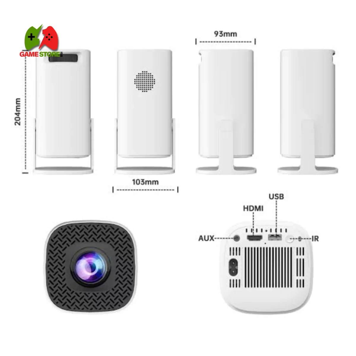A compact Android 11-powered smart projector with 4K support, dual wireless controllers, 3000+ built-in retro games, WiFi 6, Bluetooth 5.4, and stunning 8000 lumens brightness — perfect for gaming, movies, and outdoor fun.