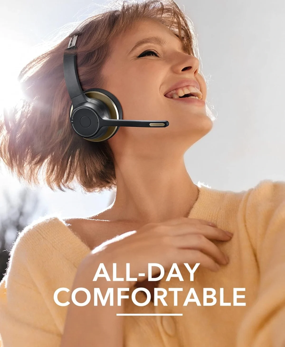 • COMFORTABLE WEARING EXPERIENCE:The on-ear cushioned ear cups fit for all-day listening comfort. The Wireless Headset’ adjustable headband provides different lengths for heads to complete the natural fit, designed for optimal comfort and sound delivery.