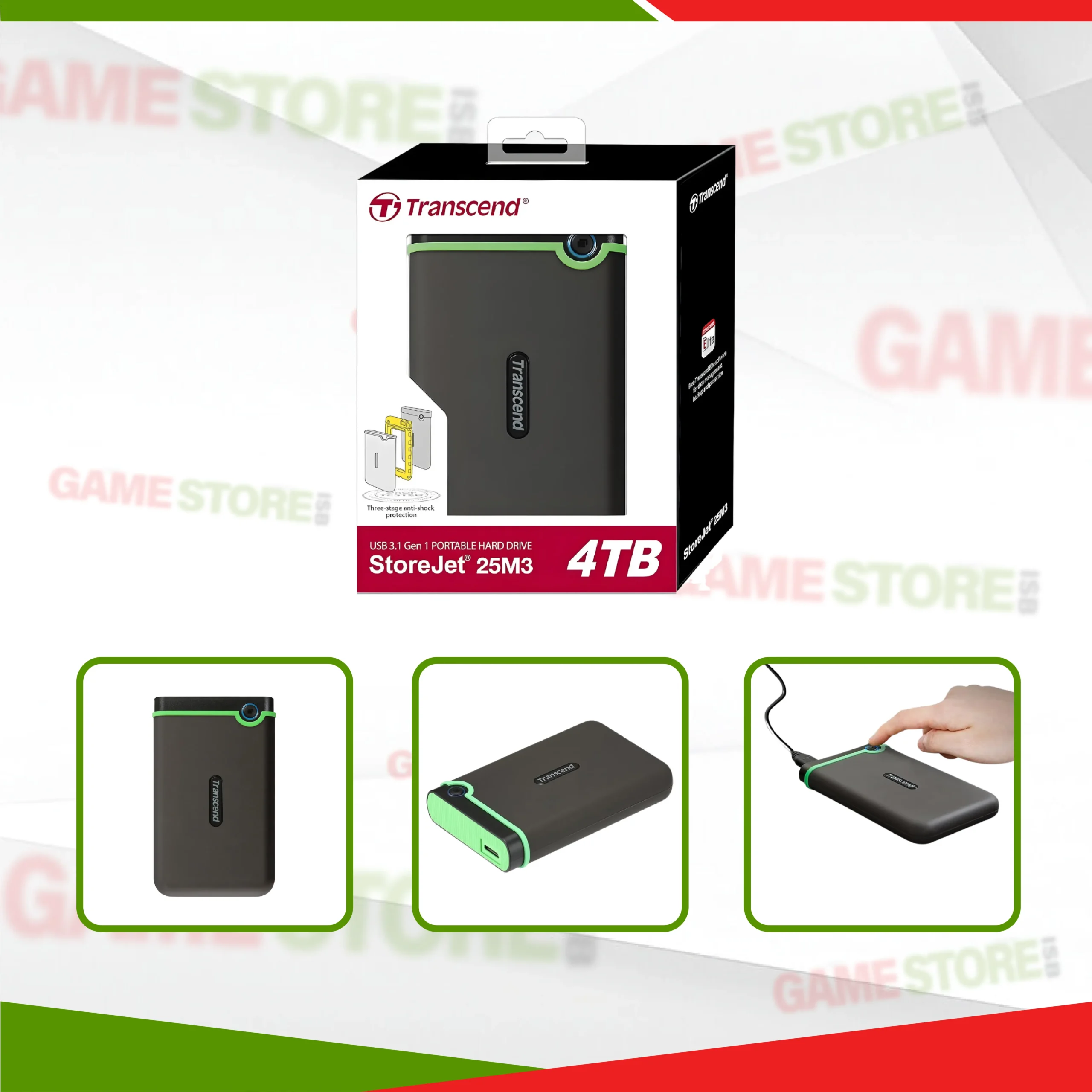 The Transcend 4TB StoreJet 25M3S is thereafter fitted with USB 3.1 Gen 1 connectivity, hence guarantees very fast and smooth data transfer. A large amount of files, libraries of games, HD videos, and high-resolution images will be transferred in a couple of seconds and will reduce the downtime to a minimum. It’s backward-compatible with USB 2.0, ensuring versatility with older devices.