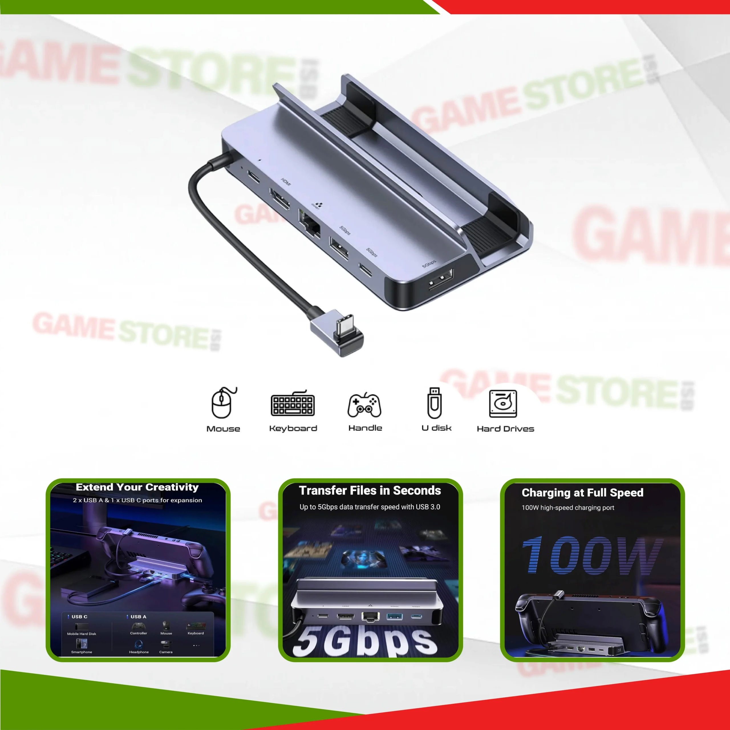 This is a turns your Steam Deck gaming handheld into a desktop gaming station. Featuring HDMI 4K output, fast charging, and multi-USB ports, the Steam Deck HDMI Dock is an ultimate gaming experience for all gamers.