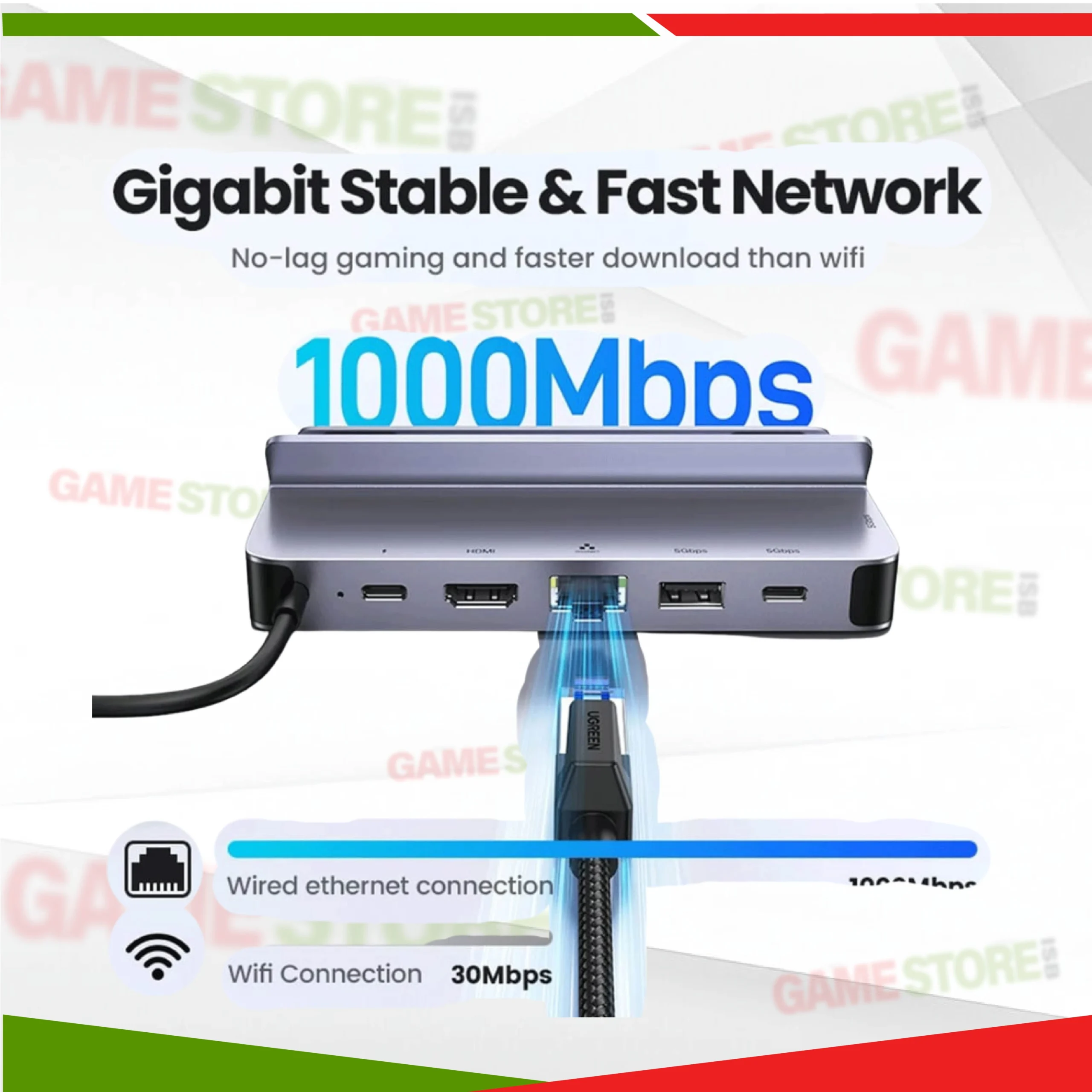 The UGREEN Steam Deck Docking Station CM666 is a high-end USB-C Dock for Steam Deck that turns your Steam Deck gaming experience into a complete desktop setup with an HDMI 4K output, Gigabit Ethernet, USB ports, and fast charging functionality. The Steam Deck HDMI Dock provides seamless and lag-free gaming performance.