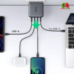 • 4-in-1 Multiport Charging: Features three USB-C ports and one USB-A port, allowing simultaneous charging of multiple devices, including laptops, tablets, smartphones, and more.