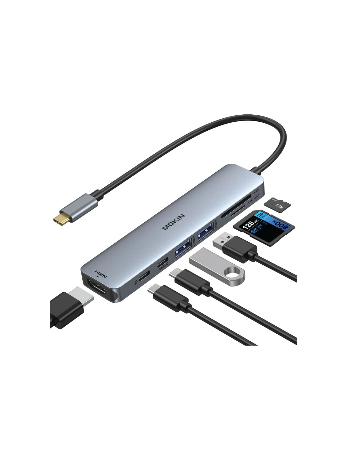 The MOKiN 7-in-1 USB C Hub HDMI Adapter is a multifunctional and highly practical accessory designed to expand the connectivity options for modern laptops, including the MacBook Pro, MacBook Air, Dell XPS, Lenovo Thinkpad, and other USB-C enabled devices. This compact hub includes various ports that enhance the versatility and usability of your device. Here are the key features and benefits of the MOKiN USB C Hub: