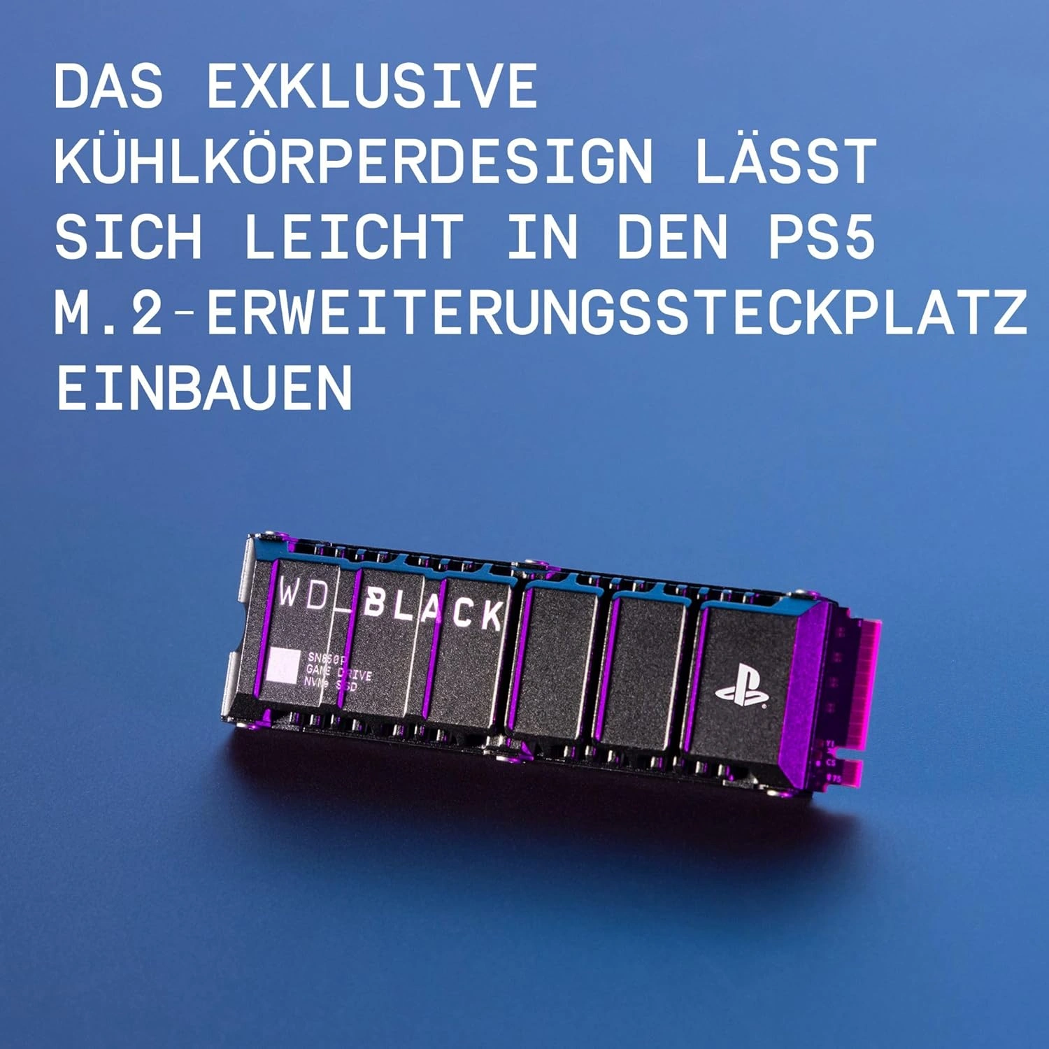 • Box contents: WD_Black SN850P 2TB NVMe SSD Officially licensed for PS5 consoles (internal gaming SSD; optimised heatsink; PCIe Gen4 technology, up to 7,300 MB/s read, M.2 2280)
