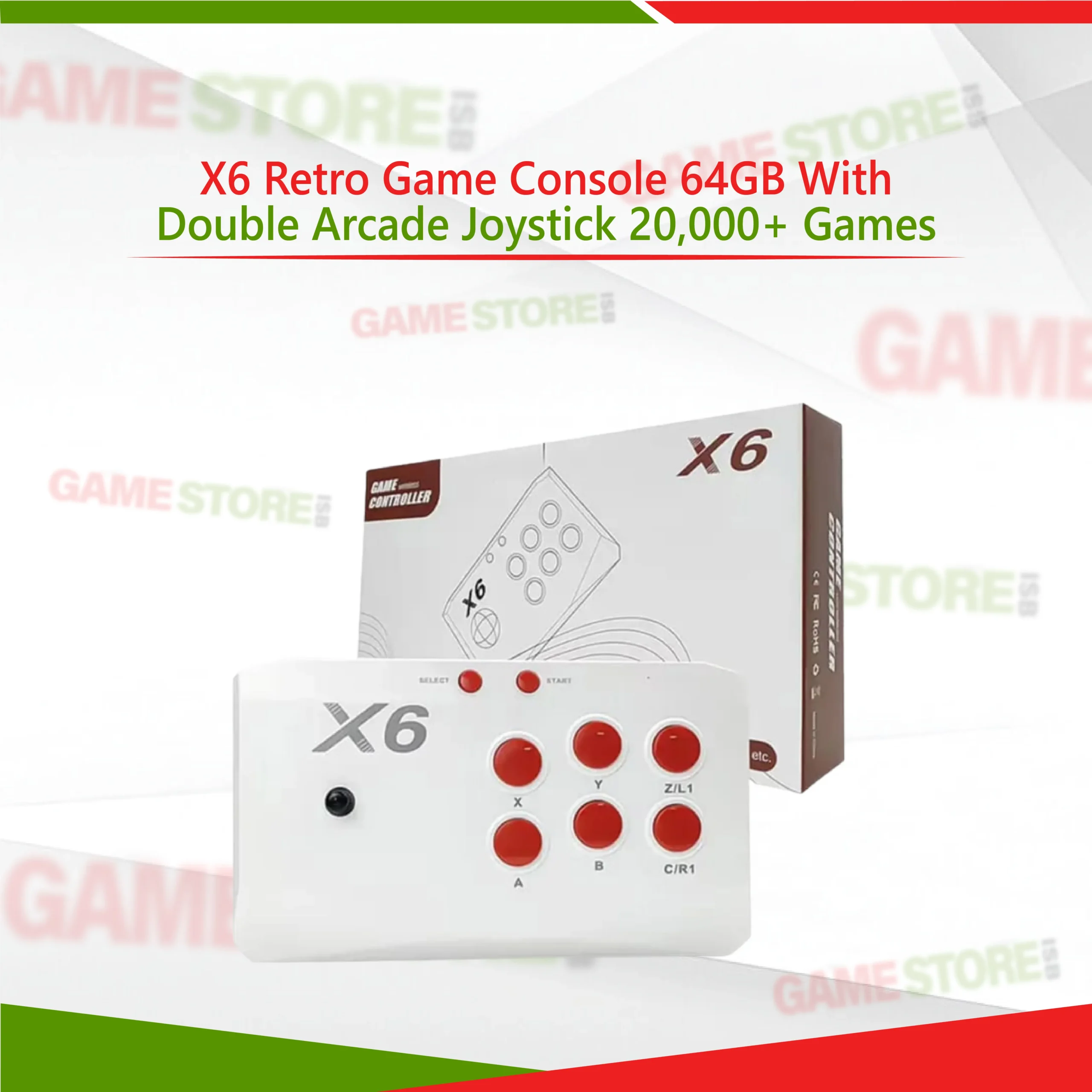 Experience absolute nostalgia with the X6 Retro Game Console 64GB, with double arcade joysticks. Equipped with over 20,000 classic games, this console brings the experience of the arcades straight to your living room. Plug-and-play functionality enables you to begin gaming right away. Ready for use with your modern TV and packed with hours of family-approved entertainment, this console is perfect for those with nostalgia for retro gaming and newcomers alike. Its compact and modern appearance, along with its control features, ensures a seamless gaming experience with your X6 Retro Game Console.