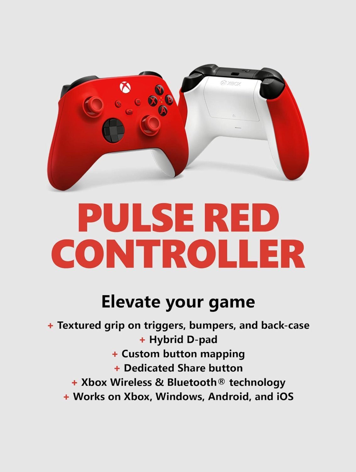 - Compatibility: The Xbox Pulse Red Controller is compatible with Xbox Series X|S, Xbox One, Windows 10 PCs, and Android devices, offering versatility across various gaming platforms.